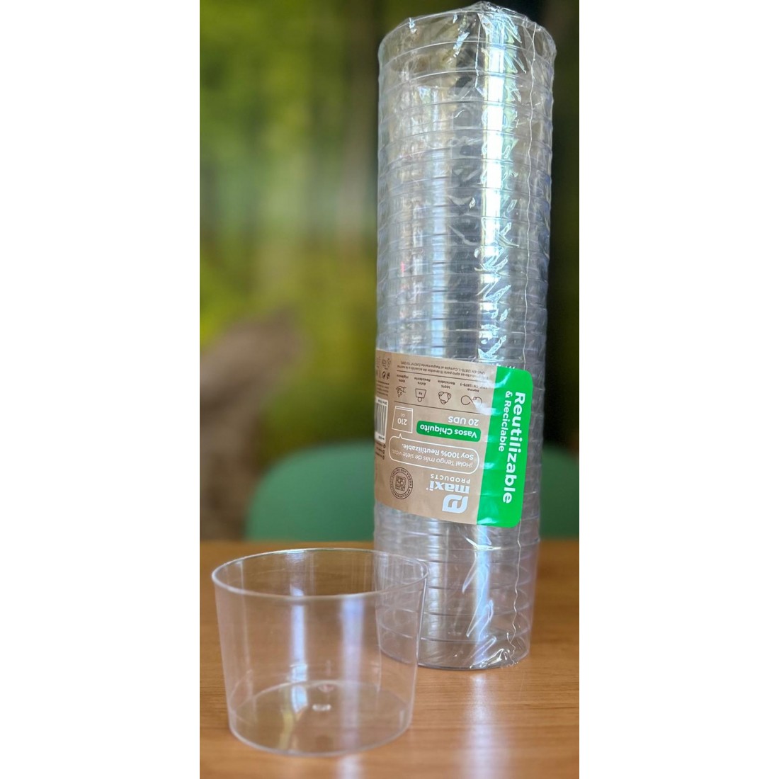 Elegancia y resistencia en un solo vaso. Este pack de 20 vasos de 210 cc está especialmente diseñado para servir vino de manera práctica y segura. Fabricados en plástico irrompible y reutilizable, son ideales para eventos al aire libre, celebraciones, catering y uso diario sin preocuparte por roturas.