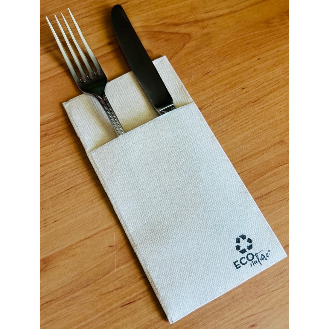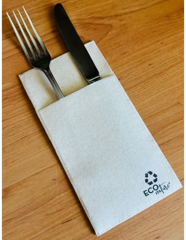 La servilleta Kanguro Eco Nature es ideal para todo tipo de eventos, catering, restaurantes, food trucks y mesas informales con un toque natural. Su diseño tipo kanguro permite colocar los cubiertos dentro, aportando orden, higiene y una presentación impecable.