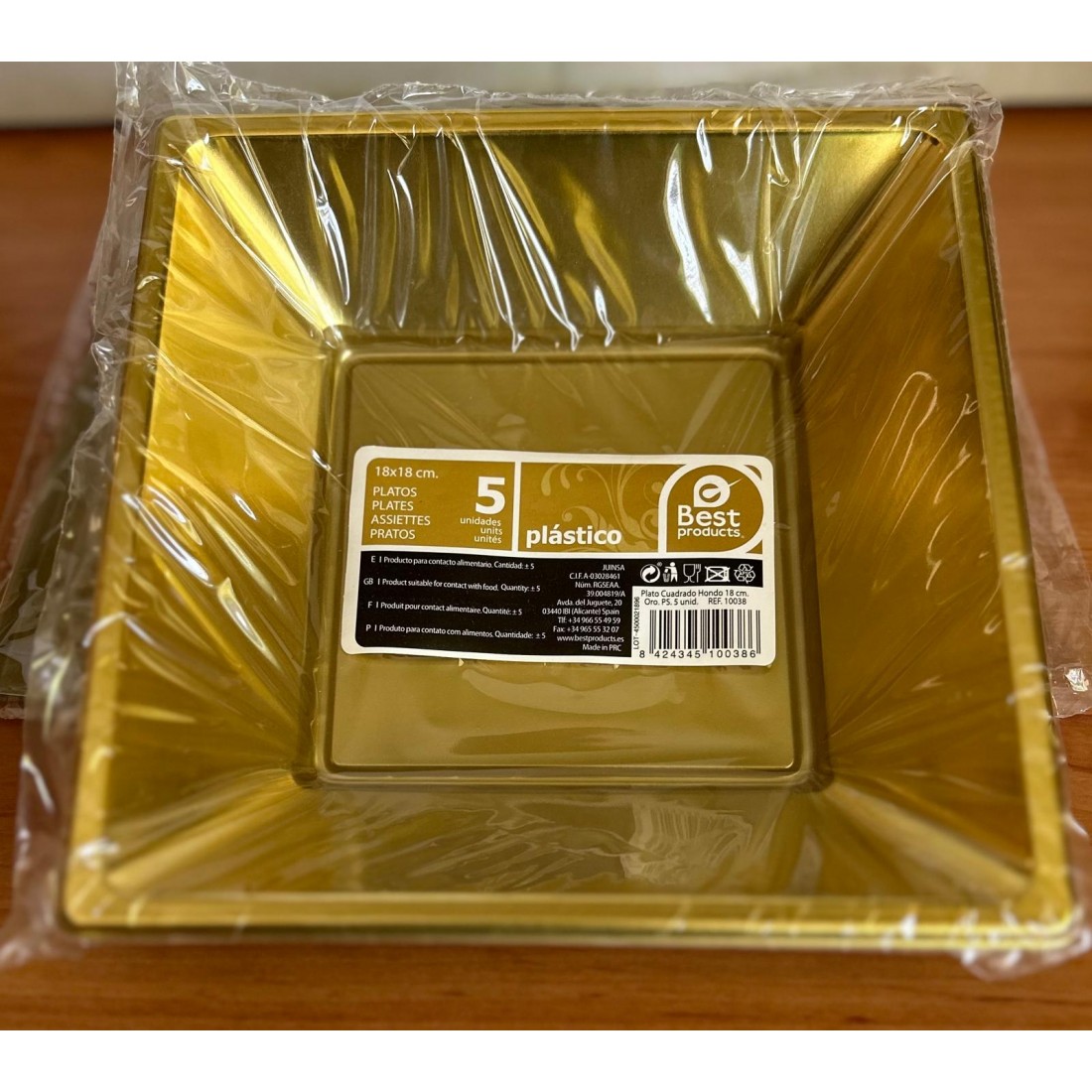 Plato Cuadrado Hondo Oro 18 x 18 cm
