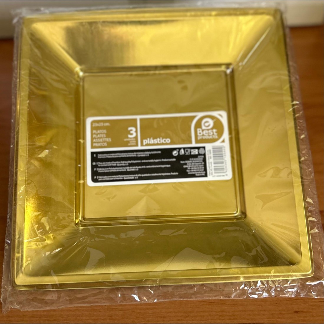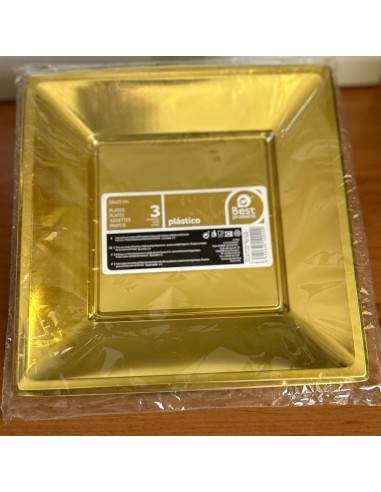Plato Cuadrado Llano Oro 23 x 23 cm