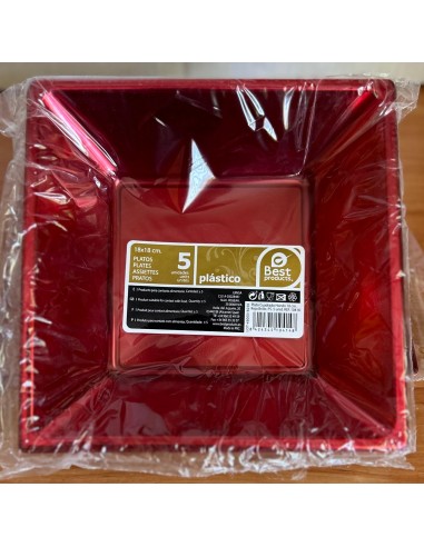 Plato Cuadrado Hondo Rojo 18 x 18 cm