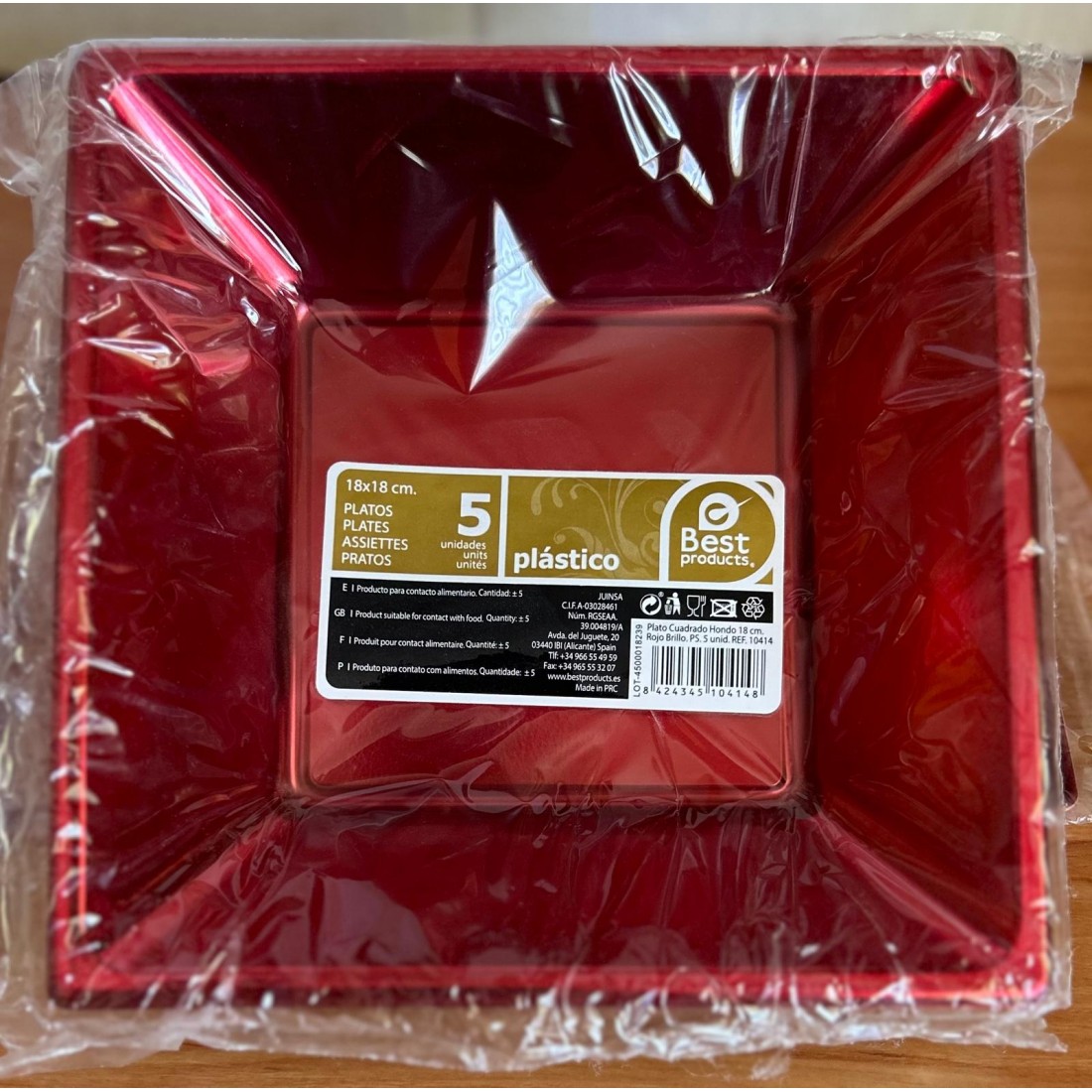 Plato Cuadrado Hondo Rojo