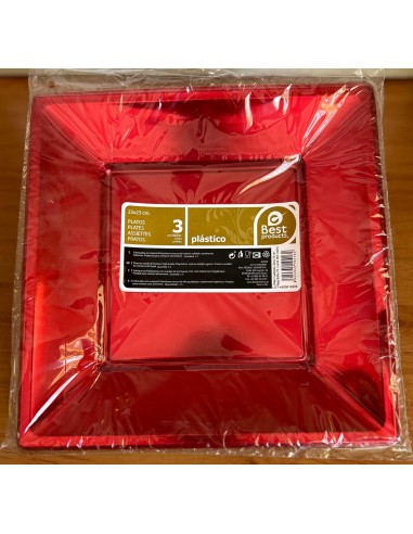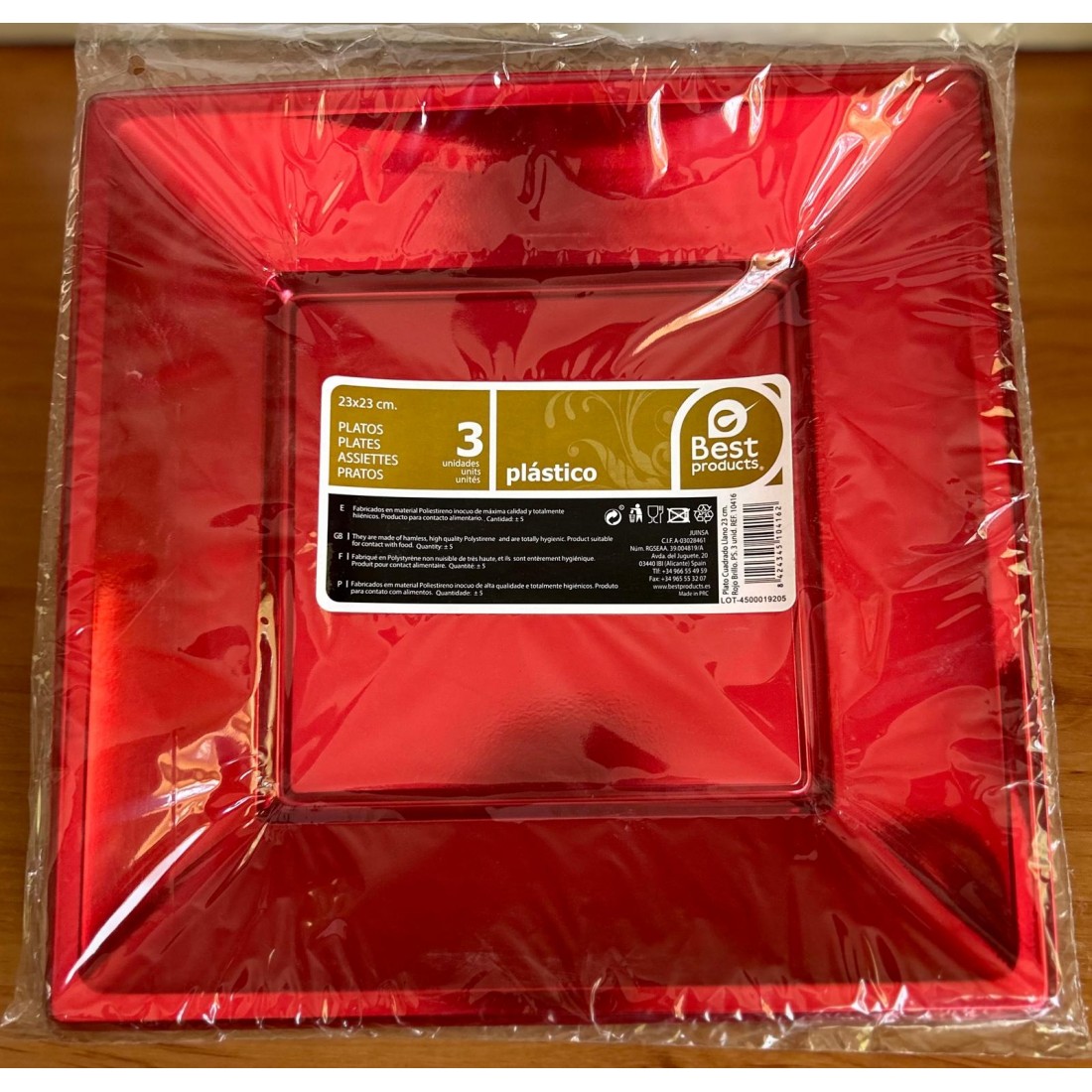 Plato Cuadrado Llano Rojo 23 x 23 cm