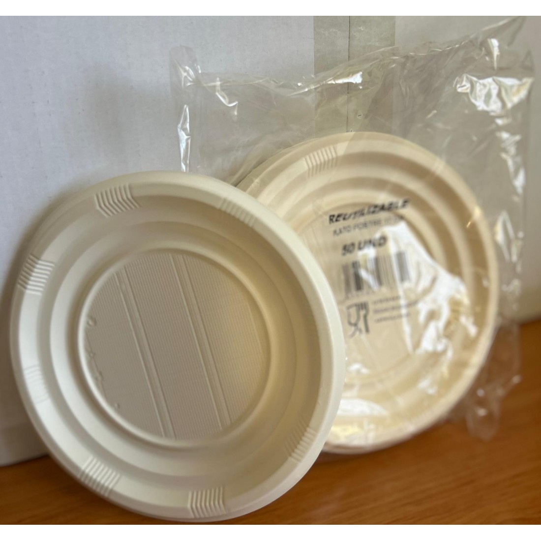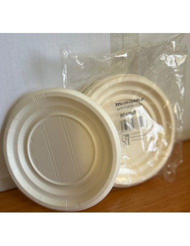 Plato llano 100% ecológico de 22 cm de diámetro, perfecto para entradas y platos principales. Fabricado con pulpa de caña de azúcar (bagazo), es una alternativa compostable y biodegradable.