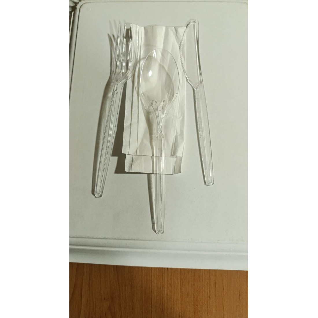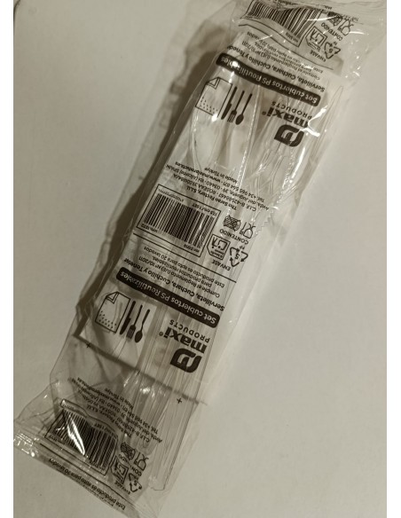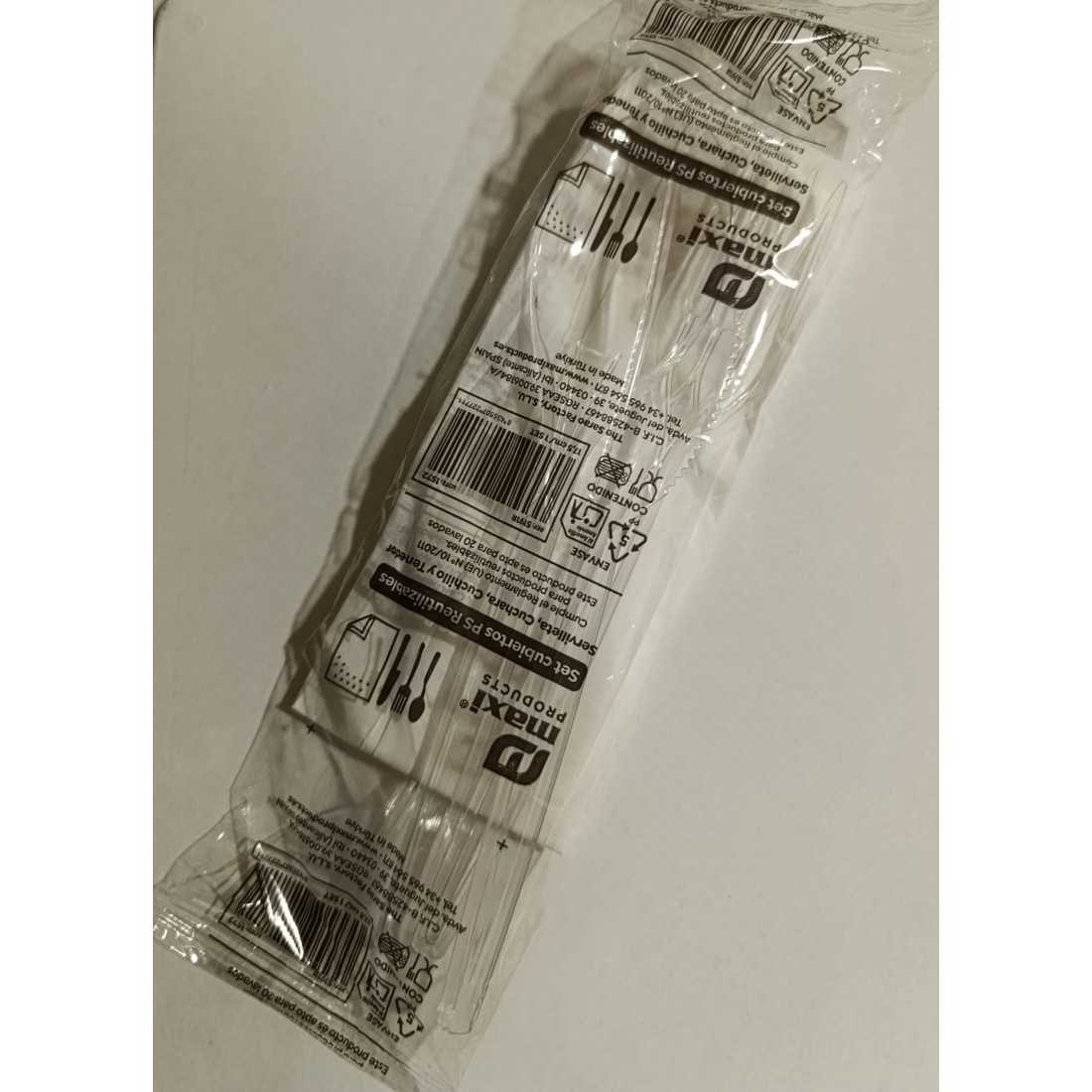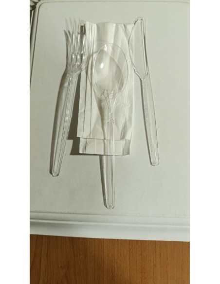 Máxima higiene y comodidad en un solo paquete. Este set "todo en uno" incluye tenedor, cuchara, cuchillo y una servilleta, individualmente enfundados y listos para usar.