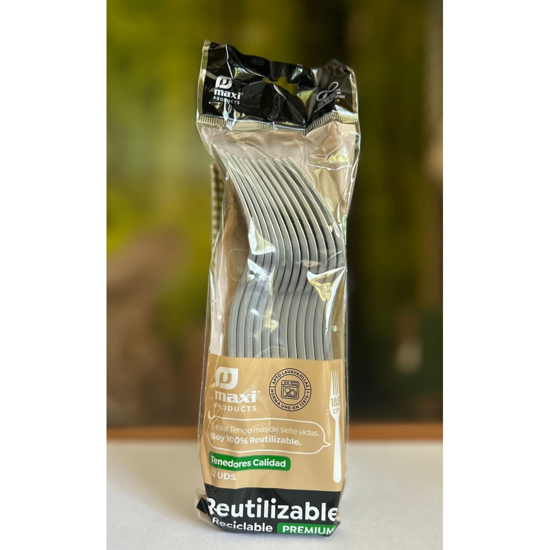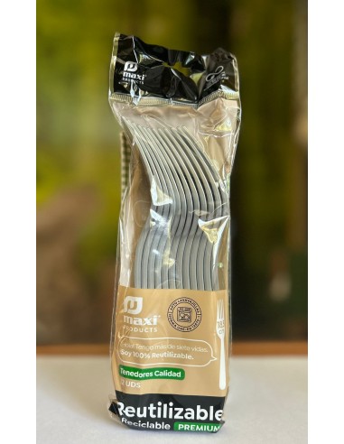 Tenedores de 18,5 cm de plástico reutilizable en color plata. Con acabado de brillo, gracias a su mayor calidad son más rígidas, elegantes y resistentes.